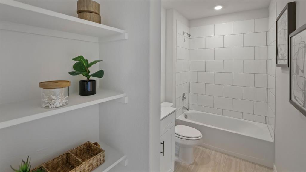 The Ozark is a beautiful two-story home featured at our Preserve at The Forum community in Grand Prairie, TX The home offers 2,538 square feet of living space, 4 bedrooms, a game room, and 3 bathrooms. As you enter the home and continue down the foyer, towards the center of the home, you'll find yourself in the open-concept kitchen and dining area that connects to the living space that provides plenty of natural light. The kitchen features a kitchen island, granite countertops, a large pantry and stainless-steel appliances throughout. Just off the living space is the main bedroom, bedroom 1, features a large bathroom with a walk-in shower and a huge walk-in closet. One secondary bedroom and full bathroom is also located on the first floor near the front of the home. Find yourself at home in the Ozark floor plan today!